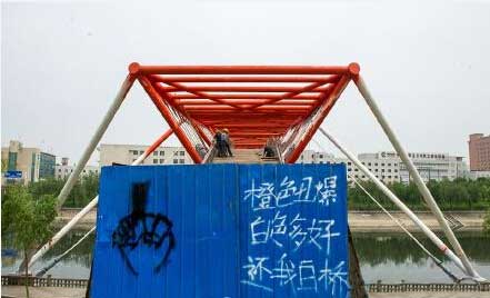 近日,位于東風路政七街附近的東風渠景觀橋,原本是白色現(xiàn)被噴成橙色。橋頭藍色護板被涂鴉,上面赫然寫著“橙色丑爆,白色多好,還我白橋”。施工人員解釋稱,橙色漆為防銹漆,可防止橋身受潮而銹跡斑斑,噴完以后會再噴回白色。你覺得哪個色好看?