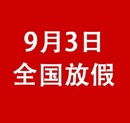 國務(wù)院發(fā)通知:中國人民抗日戰(zhàn)爭暨世界反法西斯戰(zhàn)爭勝利70周年紀(jì)念日(9月3日)放假一天!為方便公眾安排假日期間生產(chǎn)生活,特作如下調(diào)休:9月3日至5日調(diào)休放假,共3天。其中9月3日(星期四)放假,9月4日(星期五)調(diào)休,9月6日(星期日)上班。