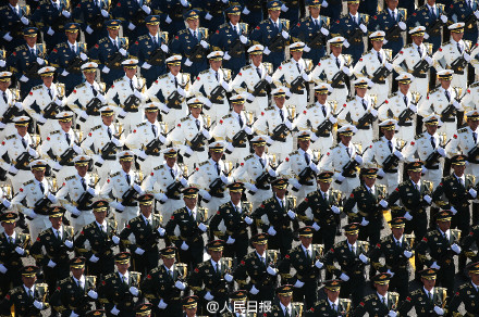 中國閱兵史上的首次設置合唱團,一千多名隊員全部由總裝、海軍、空軍所屬院校的學員組成,為網友們奉獻了“最霸氣的現(xiàn)場演唱會”。