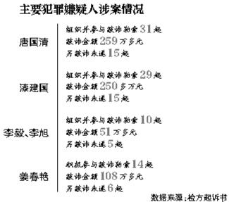 起訴書中,唐國(guó)清、漆建國(guó)、李毅被認(rèn)為是組織領(lǐng)導(dǎo)者;姜春艷積極參與并協(xié)助唐國(guó)清等人管理其他人。上述4人被認(rèn)為是主犯。
