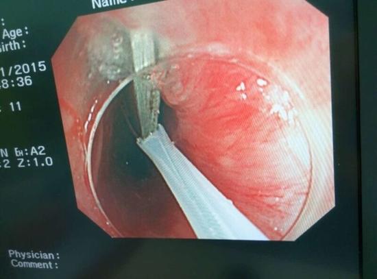 隨后,范醫(yī)生先用圈套器套取出了長(zhǎng)10厘米的鑷子,再一個(gè)一個(gè)地取出了打火機(jī)。整個(gè)取出過(guò)程小心謹(jǐn)慎而又一氣呵成,只用了不到10分鐘。