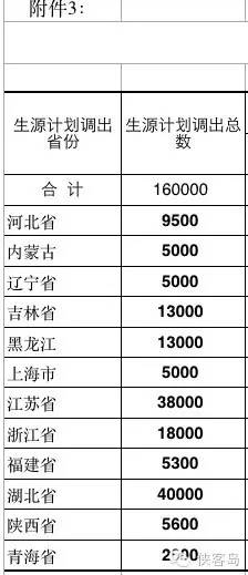 調(diào)出的是:河北、內(nèi)蒙古、黑龍江、吉林、遼寧、上海、江蘇、浙江、福建、湖北、陜西、青海;調(diào)入的是:山西、江西、河南、湖南、廣東、廣西、四川、貴州、云南、西藏。