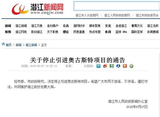 2016年6月27日上午,潛江市部分人員違反國家法律法規(guī),在未向有關部門提出申請并獲得許可的情況下,非法采取利用微信群傳播請愿書,擅自上街游行,聚集請愿等方式,要求政府停止引進奧古斯特項目,擾亂社會公共秩序,造成了很壞的社會影響。
