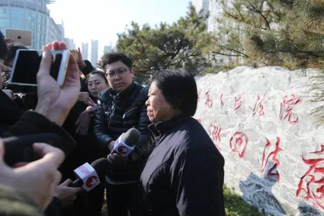 2016年12月2日,最高人民法院第二巡回法庭改判聶樹(shù)斌無(wú)罪。庭審結(jié)束后,聶母在法院外接受媒體采訪。新京報(bào)記者王飛 攝