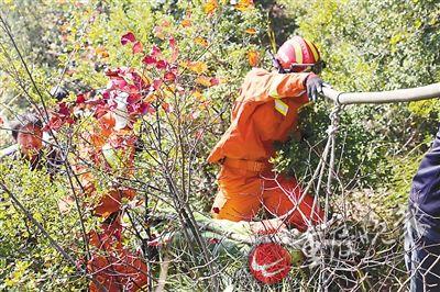 消防官兵和當(dāng)?shù)卮迕衽G斬棘護(hù)送白靜波遺體下山