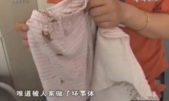 有個(gè)人我們是認(rèn)識(shí)的,他也是在菜場(chǎng)里做生意的,有的時(shí)候會(huì)抱女兒玩。這回也是抱女兒出去玩,差不多40分鐘才回來(lái)。當(dāng)時(shí)寶寶手上拿著糖但是目光很呆滯,我給她換衣服,碰到她下體,她有點(diǎn)不高興,尿不濕的血已經(jīng)滲到里面去了……