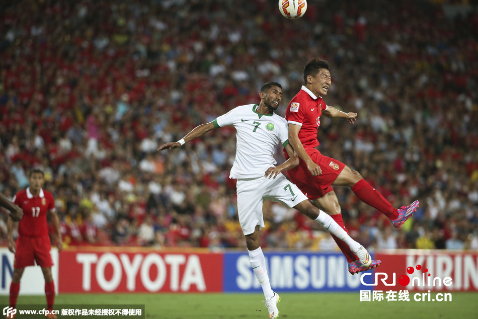 第21分鐘,中國隊前場反搶,于海和武磊打出快速反擊,于海強突橫傳門前,被沙特后衛(wèi)奧馬爾頭球解圍出底線。比賽進(jìn)行到25分鐘之后,沙特隊更多的利用腳下技術(shù)的優(yōu)勢打出小范圍配合,不過中國隊整體防守較為嚴(yán)密,并且通過積極地防守打出快速反擊威脅對方球門。
