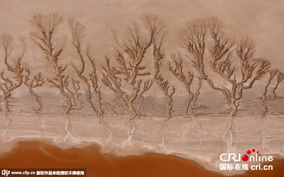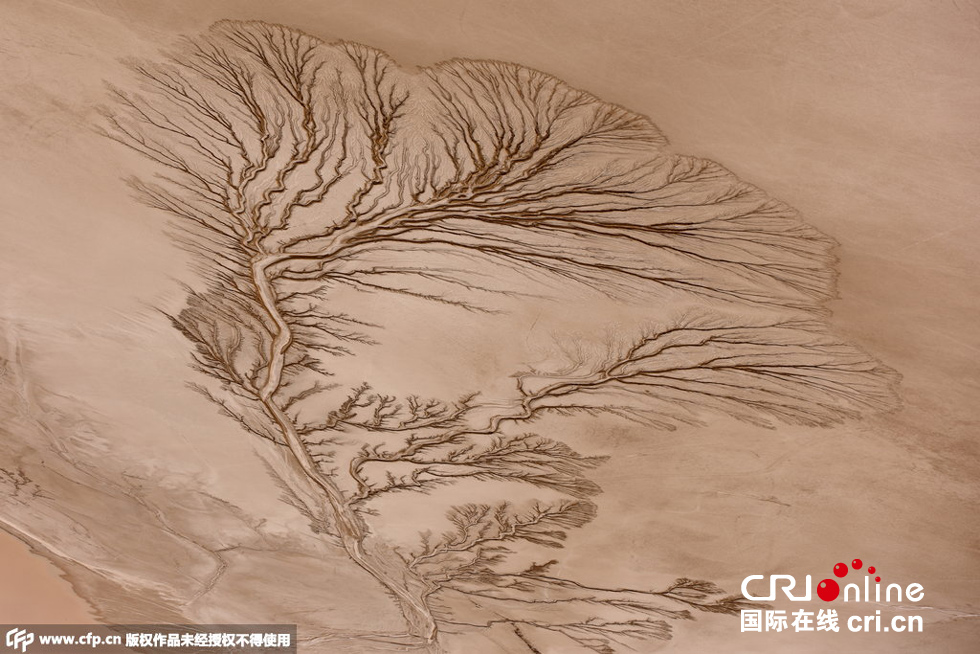 2015年6月5日消息,美國(guó)加州莫哈韋沙漠,這些照片看起來(lái)像是拍了森林中的一排樹,但事實(shí)上它們是干涸湖底的紋路。這種紋路足足綿延3英里。飛行教員Jassen Todorov在3000英尺的空中拍下了這組照片。圖片來(lái)源:CFP