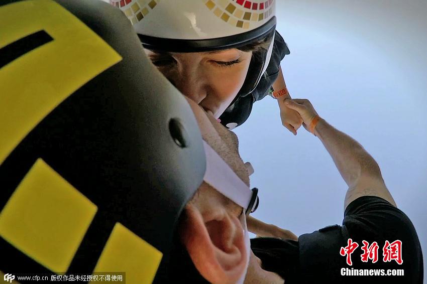羅伯塔·曼奇諾和諾亞·巴恩森都是知名跳傘運(yùn)動(dòng)員,他們跳傘時(shí)在高空中的親吻簡直可以稱為“世界最瘋狂之吻”。 圖片來源:CFP視覺中國