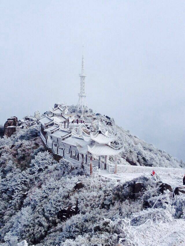 據(jù)網(wǎng)友@中國(guó)氣象愛(ài)好者 po出一張被冰封的福建九仙山測(cè)風(fēng)塔的圖片,雖然美的上天,清理起來(lái)恐怕非常麻煩。網(wǎng)友大呼: 冰封王座、 九層妖塔、 至尊冰殿,誰(shuí)快坐上去。另?yè)?jù)東南快報(bào)微博也曬出九仙山美圖:霧凇下的九仙山,太配得起她的名字!山上今天達(dá)到了-12℃!