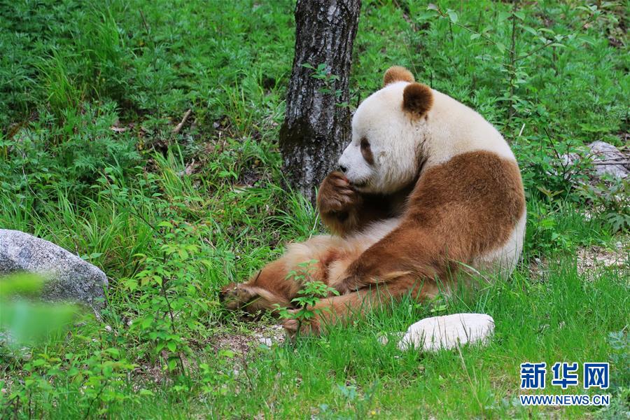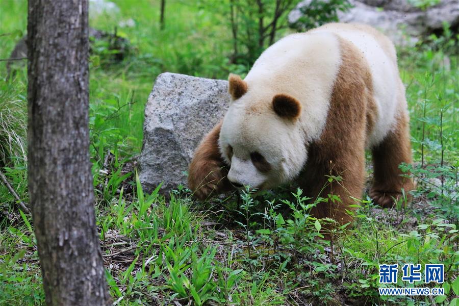 野化培訓(xùn)已逐漸改變大熊貓?jiān)瓉碓趫@中飼養(yǎng)的生活狀態(tài),據(jù)介紹,目前有資料記載的已經(jīng)發(fā)現(xiàn)的棕色大熊貓有8只。 新華社發(fā) 梁?jiǎn)⒒?攝 圖片來源:新華網(wǎng)