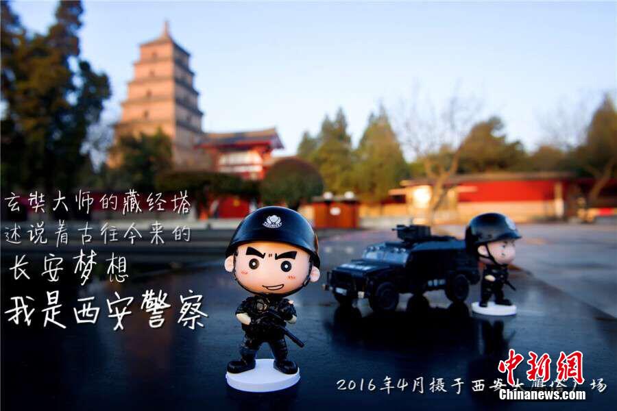 西安警方5日發(fā)布了十張Q版警察海報,包括社區(qū)民警、交警、特警等多個警種,所有上鏡“民警”都是萌酷可愛的Q版公仔,Q版的警務站和防爆特種警車也首次亮相。海報中,Q版警察在鐘樓、大雁塔、小雁塔等西安著名地標執(zhí)勤巡邏、疏導交通,演繹著西安警察默默守護平安的平凡故事。西安市公安局新聞中心主任鄭朝剛介紹,這組圖片也拉開了“2016平安之音 西安警察故事”主題活動序幕,西安警方將從即日起至今年年底,以獨特的視角和生動的形式,講述一線民警在守護平安、打擊犯罪中平凡而又不凡的故事。張倩/文 西安警方供圖