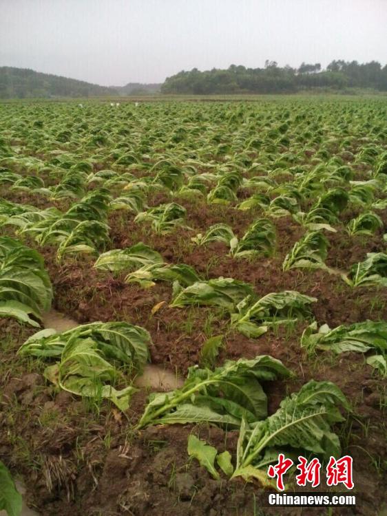 5月4日至5日,地處湘南的永州市道縣遭遇龍卷風和暴風雨襲擊,部分鄉(xiāng)鎮(zhèn)的樹木被大風攔腰折斷或連根拔起,46個行政村電力中斷,當季農(nóng)作物特別是烤煙大面積受災。目前,該縣已迅速組織2000余名各級干部,深入災區(qū)組織搶險救災。圖為龍卷風過后烤煙大面積倒伏。 道縣宣傳部 供圖