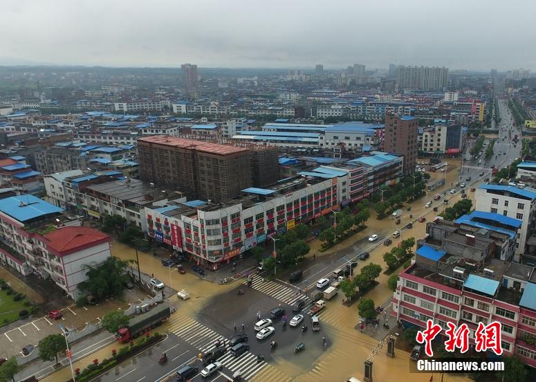 5月5日,地處湘南的永州市道縣遭遇暴風雨襲擊,縣城內多處低洼路段被水淹沒。當?shù)胤姥床块T正嚴密監(jiān)控雨情、水情,確保安全度汛。 中新社發(fā) 何紅福 攝