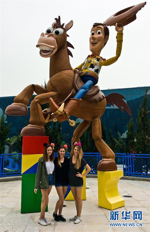 5月15日,參與內(nèi)部測(cè)試的游客在上海迪士尼玩具總動(dòng)員酒店的廣場(chǎng)前留影。當(dāng)日,上海迪士尼主題酒店之——玩具總動(dòng)員酒店大堂、廣場(chǎng)、餐廳、度假區(qū)短駁車等區(qū)域及設(shè)施開始內(nèi)部測(cè)試。這家共有800個(gè)房間的主題酒店將于6月中旬正式迎客。新華社發(fā)(鈕一新 攝)