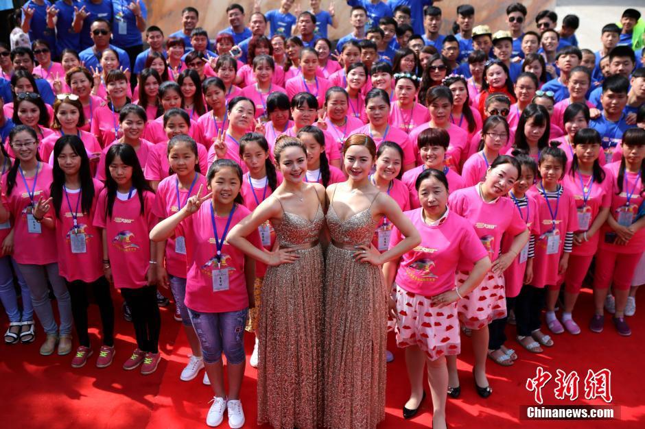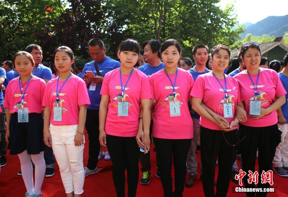 5月29日,河南三門峽,來自全國的老中青100余對雙胞胎聚集一起拍攝合影照,他們手拉手“向天笑”,一樣的裝束、一樣的臉龐,看暈觀眾,仿佛走進了重影的世界。 王中舉 攝