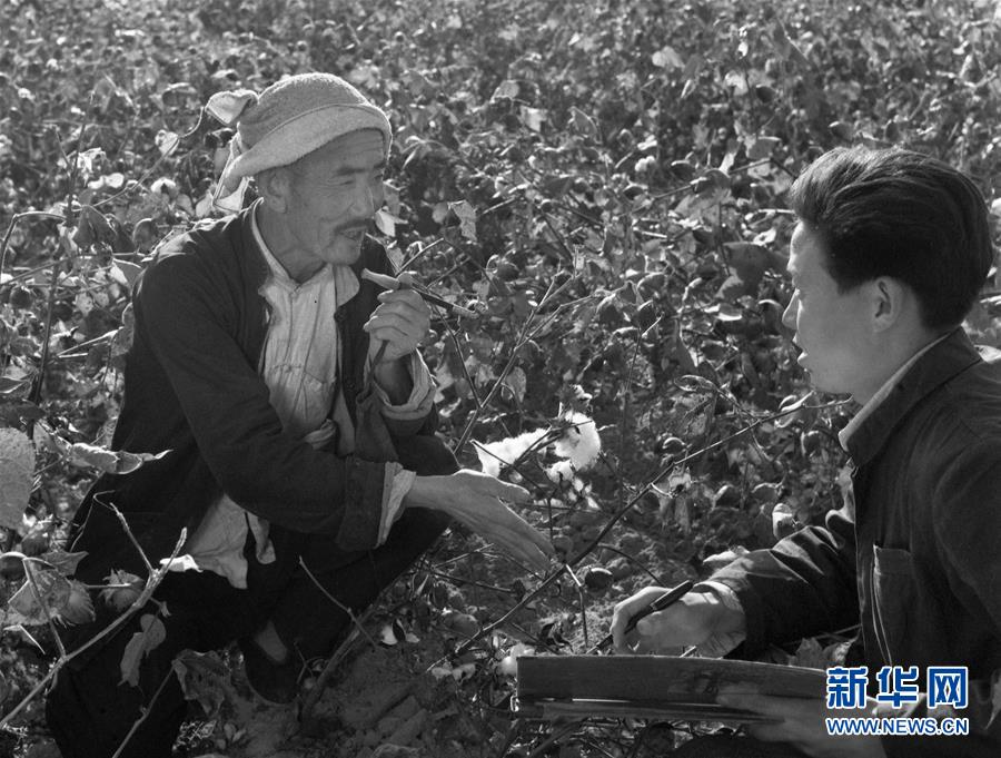 圖為植棉能手吳吉昌(左)在棉田里介紹他的植棉經(jīng)驗(yàn)。一張照片,定格一個(gè)瞬間;一組群像,打開一部史冊(cè)。中國共產(chǎn)黨成立95周年之際,我們選取新華社中國照片檔案館珍藏的資料照片,展現(xiàn)中國共產(chǎn)黨人特有的“紅色氣質(zhì)”。新華社發(fā)