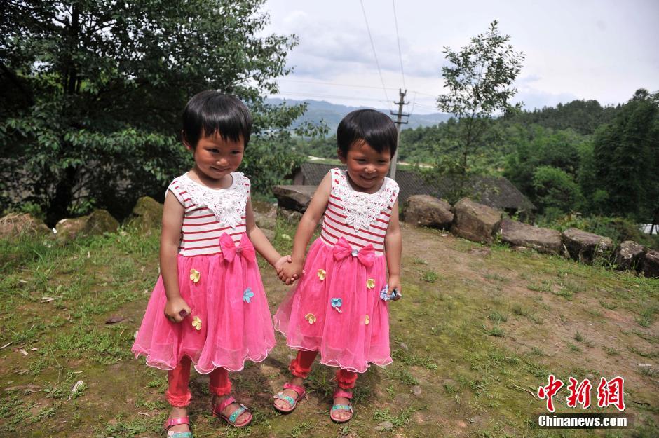 7月5日,重慶市江津區(qū)青堰村11對雙胞胎相聚一起合影。據悉,青堰村共有367戶人家,其中就有39對是雙胞胎。雙胞胎中年齡最大的已有89歲。圖為青堰村的雙胞胎小女孩。陳超 攝