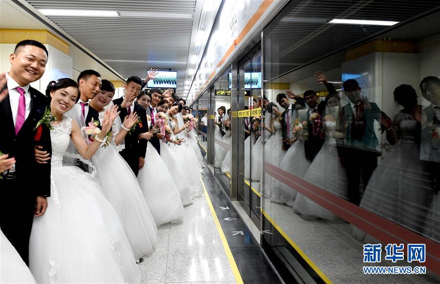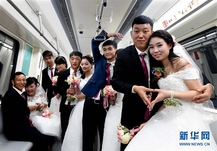 當日是中國傳統(tǒng)的七夕節(jié),“緣系地鐵,情定鄭州”大型集體婚禮在鄭州軌道交通城郊線項目部舉行,來自鄭州地鐵建設一線的11對新人在百余名建設者的共同見證下步入婚姻殿堂。這些新人分別來自正在建設的鄭州軌道交通1號線二期、2號線一期等5個地鐵建設項目部。婚禮儀式后,11對新人共同試乘即將開通運營的鄭州地鐵2號線一期。新華社記者李安攝