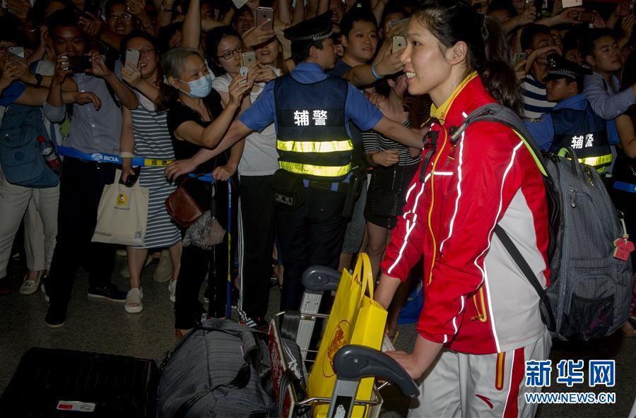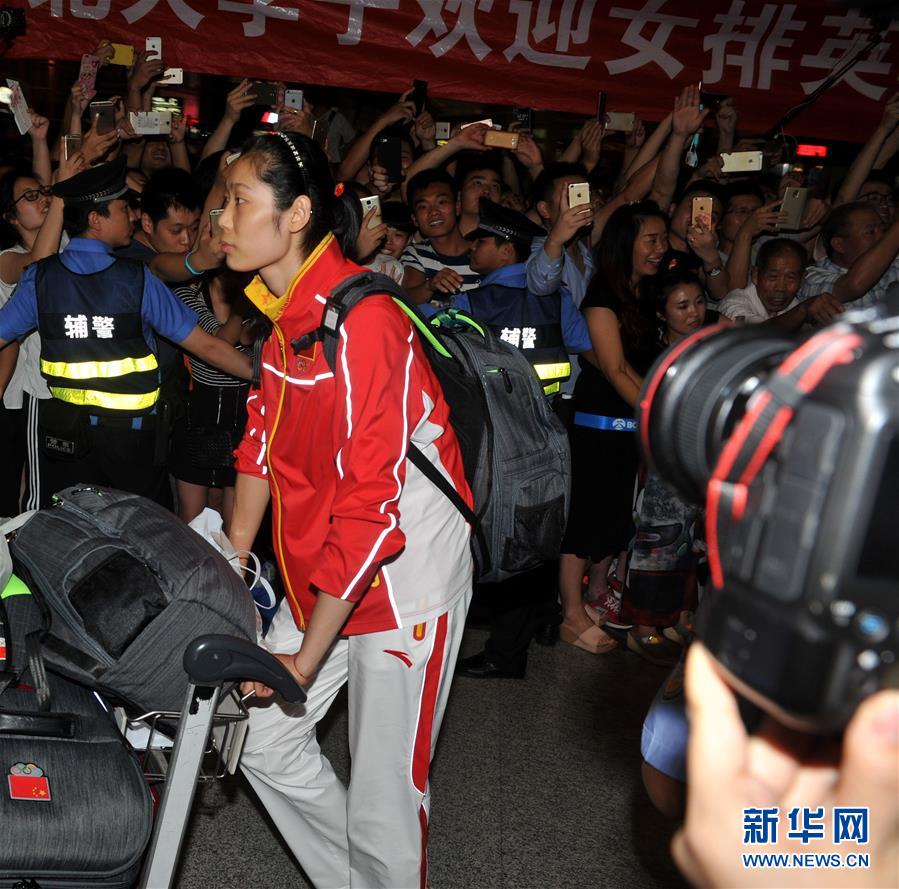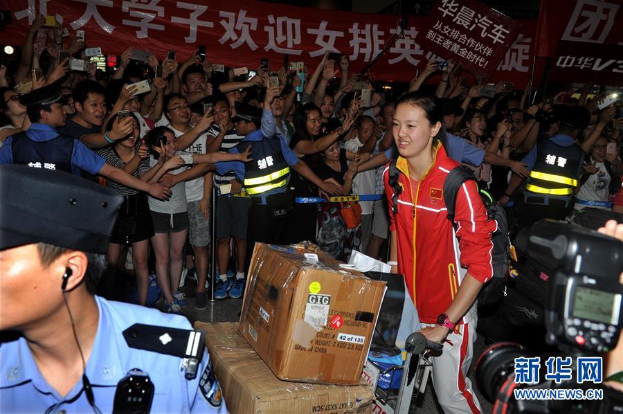 8月23日,中國女排隊員徐云麗抵達北京首都國際機場。當(dāng)晚,在里約奧運會獲得金牌的中國女排回國。 新華社記者陳曉偉攝