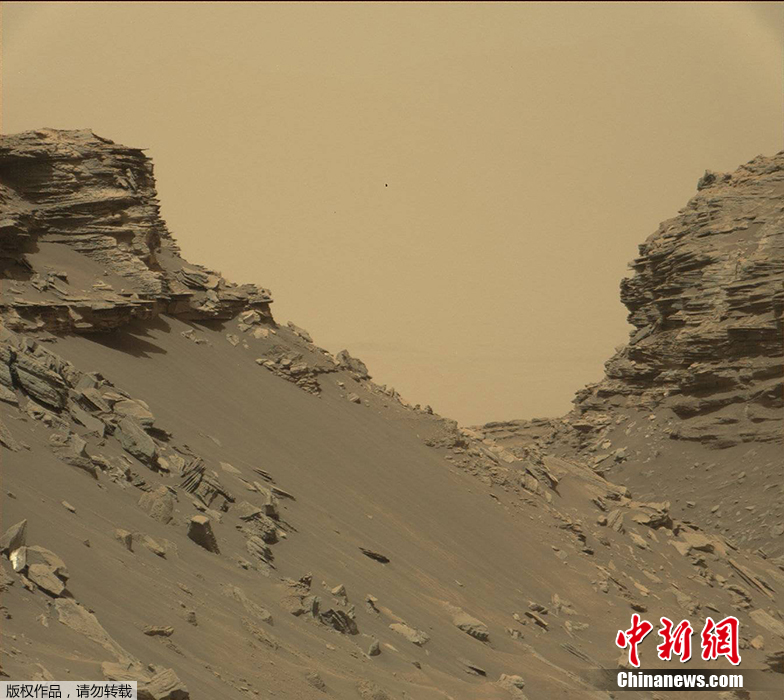 NASA形容,“好奇號”仿佛進(jìn)行了一趟“橫越美國沙漠的公路之旅”。影像中,火星上有著與地球景觀相似的崎嶇山壁。