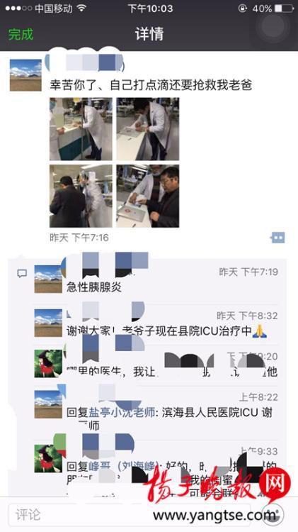 記者聯(lián)系上微信好友劉海峰,他告訴記者,昨天晚7點(diǎn)左右,他老爸重因病去濱海縣人民醫(yī)院搶救,進(jìn)入重癥病房后,跟著一名護(hù)士去喊醫(yī)生,看到一名男醫(yī)生坐在辦公室的看病歷?!拔液唵握f了一下爸爸的病情,他立刻推著掛著點(diǎn)滴的架子跑了出來?!眻D片來源:揚(yáng)子晚報網(wǎng)