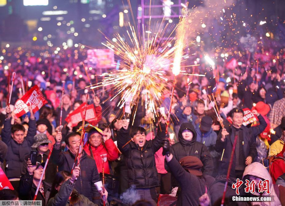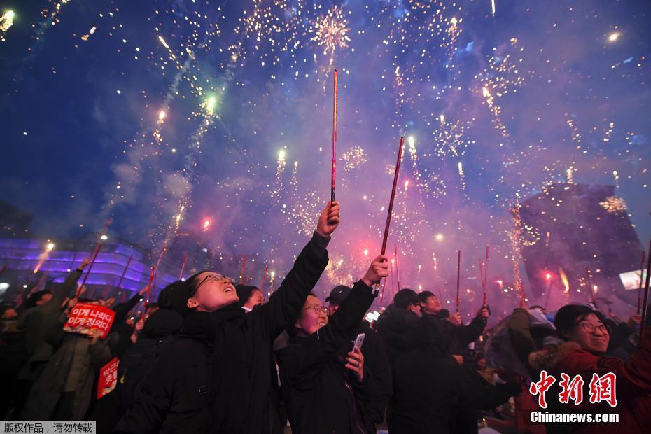 當(dāng)?shù)貢r(shí)間2017年3月11日,韓國(guó)首爾,民眾慶祝樸槿惠被彈劾下臺(tái),并要求拘捕樸槿惠。韓國(guó)憲法法院10日通過(guò)前總統(tǒng)樸槿惠彈劾案后,樸槿惠正式下臺(tái),但她目前仍留在青瓦臺(tái)官邸內(nèi),未有公開(kāi)露面或發(fā)表聲明。知情人士透露,樸槿惠得悉法院裁決后,精神大受打擊,需要時(shí)間平復(fù)心情,分析認(rèn)為她至今仍未就裁決表態(tài),是“沉默抗議”裁決。