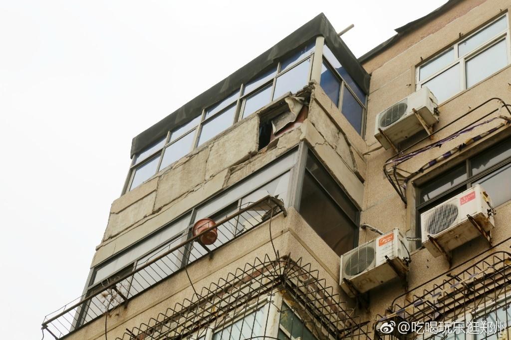 2017年3月12日,鄭州遭遇5級以上大風(fēng)襲擊,只聽“咚”“咚”幾聲,紅專路附近一棟居民樓的陽臺因年久失修,發(fā)生大面積的倒塌。