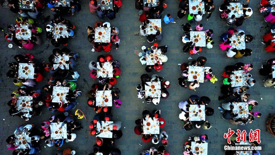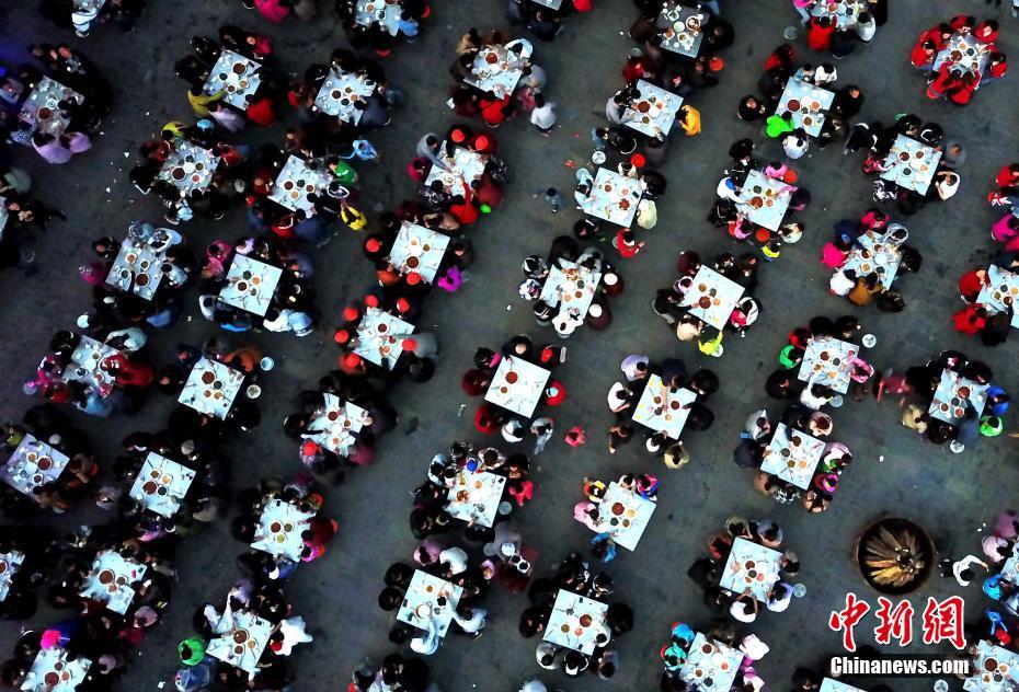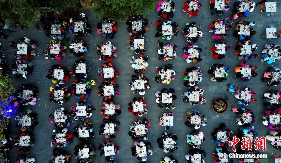 4月22日晚,河南欒川雞冠洞高山牡丹節(jié)開幕,特地舉辦千人牡丹宴,當?shù)氐奶厣珯璐ǘ垢溲坎艘约爸鞑四档ぱ嗖思娂娚献?,吸引上千民眾品嘗,場面壯觀。 中新社記者 王中舉 攝