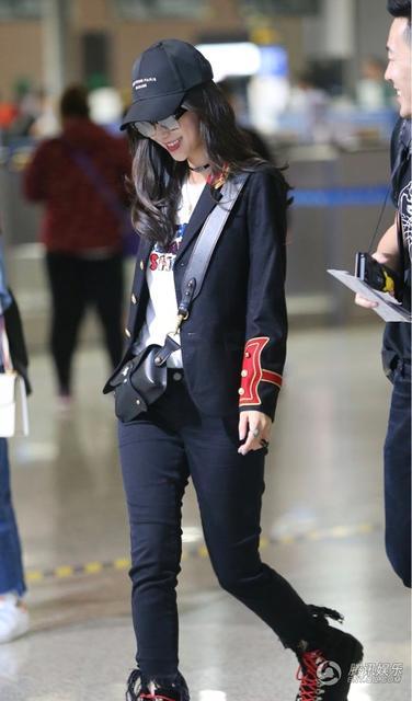 騰訊娛樂訊 23日下午,Angelababy現(xiàn)身上海機(jī)場,一身紅黑拼色西裝讓Baby看起來十分帥氣有型。