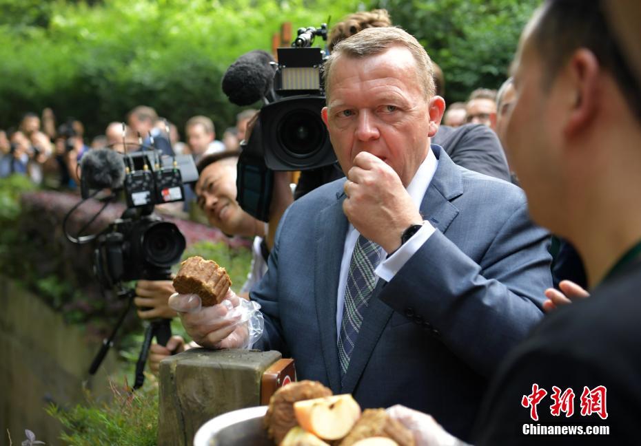 5月2日,丹麥?zhǔn)紫嗬鼓律勾笮茇埑蕴O果。當(dāng)日,應(yīng)中國(guó)國(guó)務(wù)院總理李克強(qiáng)邀請(qǐng),丹麥?zhǔn)紫嗬鼓律D行抵達(dá)中國(guó)成都,開始對(duì)中國(guó)進(jìn)行正式訪問(wèn),拉斯穆森此訪系其2015年當(dāng)選首相以來(lái)首次訪華,其訪問(wèn)首站就來(lái)到四川成都。中新社記者 劉忠俊 攝