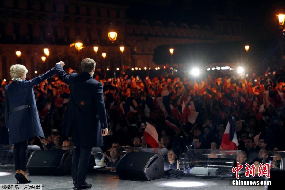 巴黎時(shí)間5月7日晚,法國(guó)總統(tǒng)選舉第二輪投票初步計(jì)票結(jié)果顯示,中間派獨(dú)立候選人、“前進(jìn)”運(yùn)動(dòng)領(lǐng)導(dǎo)人埃馬紐埃爾·馬克龍以大幅優(yōu)勢(shì)擊敗極右翼政黨“國(guó)民陣線”候選人馬麗娜·勒龐。年僅39歲的馬克龍由此成為法國(guó)史上最年輕的總統(tǒng),也成為世界上最年輕的大國(guó)領(lǐng)導(dǎo)人。圖為馬克龍的支持者在得知馬克龍當(dāng)選后歡呼。中新社記者 龍劍武 攝