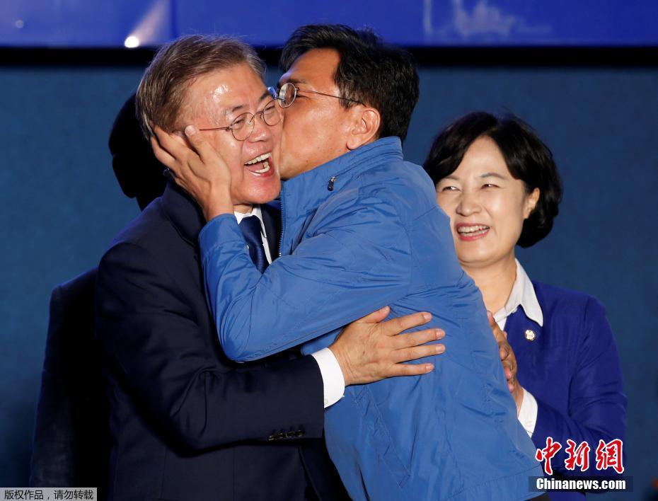 當(dāng)?shù)貢r(shí)間5月9日深夜,韓國(guó)第19屆總統(tǒng)選舉共同民主黨候選人文在寅及其競(jìng)選團(tuán)隊(duì)現(xiàn)身首爾光化門(mén)廣場(chǎng),發(fā)表“勝選演說(shuō)”,與支持民眾握手慶祝。據(jù)出口民調(diào)顯示,文在寅在當(dāng)日進(jìn)行的大選投票中以41.4%的支持率絕對(duì)優(yōu)勢(shì)勝選。在選舉管理委員會(huì)公布的大部分開(kāi)票結(jié)果中,文在寅得票率也遙遙領(lǐng)先,提前鎖定勝局。
