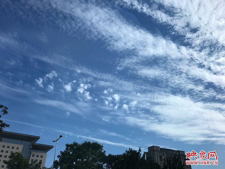 立秋大雨過后,8月8日清晨時分,鄭州上空出現(xiàn)美麗的魚鱗云,讓人沉醉,讓人興奮。抬頭45度,仰望天空,鬧市與清澈只有一顆心的距離……