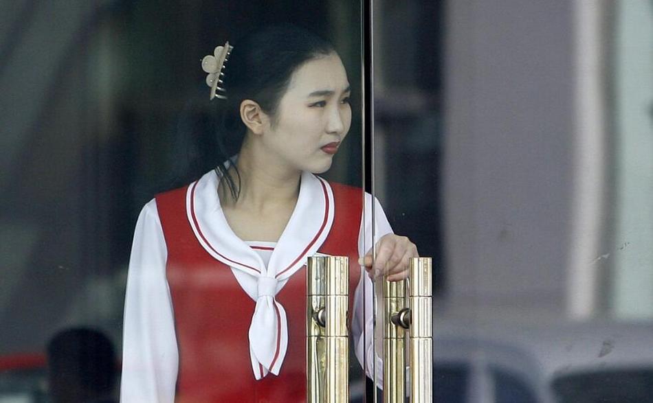 站在店門口的朝鮮服務員。