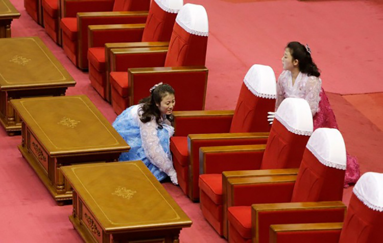 看完了朝鮮空姐,你想知道朝鮮其他職業(yè)女性是什么樣子的嗎?也許是因為影像資料較少,也許是因為傳言太奇幻。朝鮮,在很多人眼里擁有一絲神秘的色彩。路透社這一系列肖像作品以拍攝朝鮮職業(yè)女性為切入點。攝影師克服重重阻難,盡力為我們記錄朝鮮女性真實的工作狀態(tài)。兩位女士在調(diào)整朝鮮最高領導人和客人的座椅。