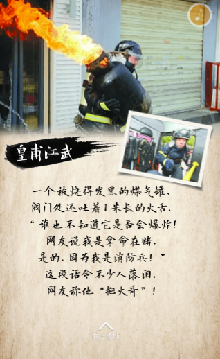 原本休假的他帶著兒子出去玩,偶遇火災(zāi),他將不滿兩歲的孩子托付給陌生路人照看,拿著滅火器,不顧個人安危,沖向樓頂滅火。他說:“我是消防員,不論任何時候,無論身上是否有軍裝!”