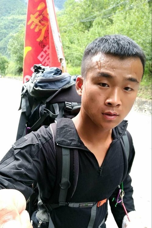 劉永威今年22歲,老家在河南濮陽(yáng)臺(tái)前縣一個(gè)農(nóng)村。初中畢業(yè)后,進(jìn)過(guò)工廠打工,后來(lái)在工地當(dāng)過(guò)瓦工,日子過(guò)得舒心安逸??墒牵@些并未滿足劉永威那顆年輕的心,拉薩布達(dá)拉宮一直是他想去的地方,為了實(shí)現(xiàn)心中夢(mèng)想,今年8月3日,劉永威背起24公斤重的行囊:里面裝有一頂高山帳篷、一條睡袋、一個(gè)酒精爐,還有鞋子及換洗的衣服,徒步向西藏出發(fā)。