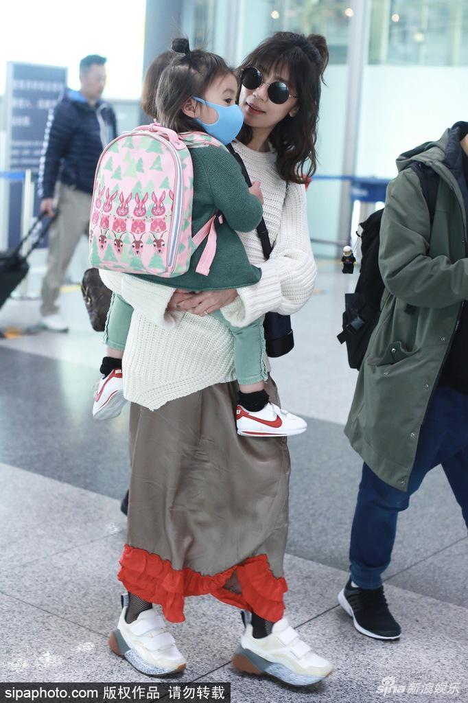 新浪娛樂訊 2018年3月20日,北京,賈靜雯抱女兒咘咘現(xiàn)身北京機(jī)場。圖文/Sipa