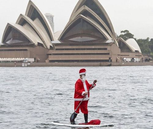 如今圣誕老人出門不單是靠雪橇了,在澳大利亞,這里高能的圣誕老人可以在劃槳板上表演水上漂來慶祝圣誕。據(jù)報(bào)道,澳大利亞當(dāng)?shù)貢r間12月18日,在悉尼港圣誕老人劃槳經(jīng)過P&O郵輪公司的“太平洋寶石號”。由于當(dāng)?shù)赜洼喒I(yè)迅速增長,將有6000名澳大利亞人登上P&O郵輪公司的油輪和圣誕老人一起慶祝圣誕節(jié)來臨。