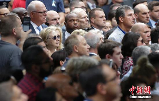 資料圖:當(dāng)?shù)貢r(shí)間9月11日,“911”15周年紀(jì)念活動(dòng)在美國(guó)紐約911紀(jì)念公園舉行,圖為美國(guó)民主黨總統(tǒng)候選人希拉里出席當(dāng)天的紀(jì)念活動(dòng)。 中新社記者 廖攀 攝