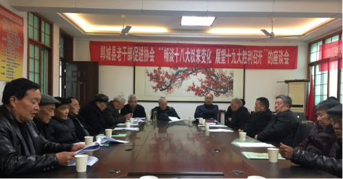 2017年3月24日,鄲城縣老干部促進(jìn)協(xié)會“暢談十八大以來變化 展望十九大勝利召開”座談會在鄲城縣老干部活動中心成功召開。本次會議由鄲城縣老干部促進(jìn)協(xié)會秘書長吳金德主持,鄲城縣委常委組織部長侯磊、老干部局長徐明堂等近50名老干部參與此次座談。會議一開始,老干部促進(jìn)協(xié)會會長趙永祥宣布了領(lǐng)導(dǎo)班子的補(bǔ)充和聘請顧問的通知,副會長王新民宣讀周口市老干部5號文件,常務(wù)副會長崔允忠做了2016年工作回顧及2017年工作計(jì)劃。