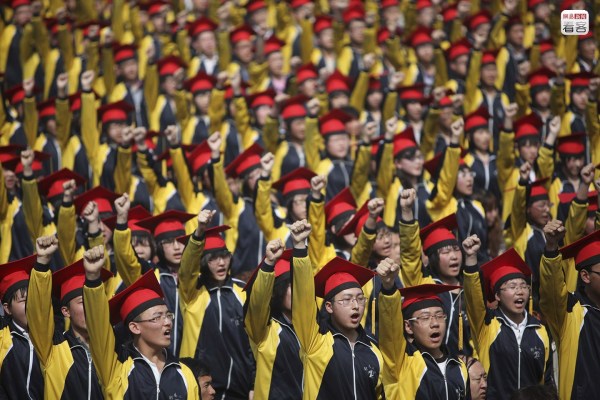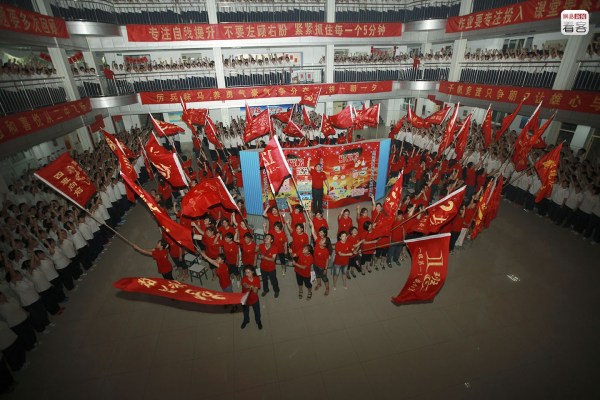 在一則2014年衡水中學(xué)高考百日誓師大會的視頻中,學(xué)生們聲音嘶啞地大喊著“專注、投入!”“我行!我行!我行!”,情緒極為高亢投入。