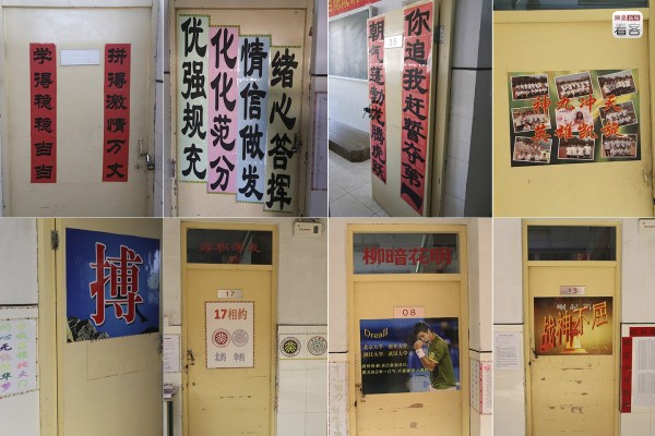 在校方的壓力之下,學(xué)生們自己也開始以不同方式給自己、給同學(xué)打雞血、互相勵志。圖為學(xué)校的“門文化”。
