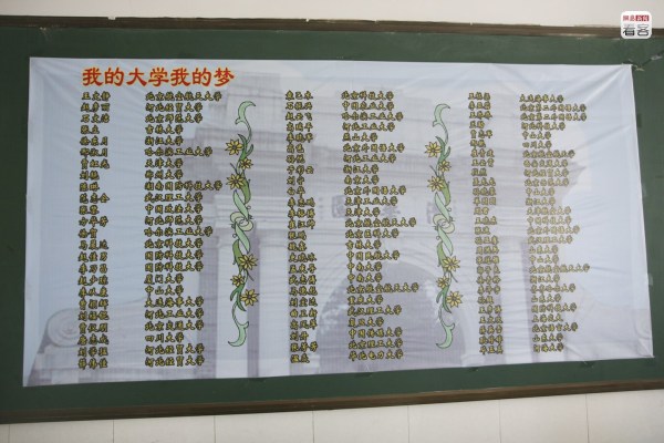 每當(dāng)空閑的時候,她便望向路對面校門口的展板上那張考上清華、北大學(xué)生與校長的大合影。她希望明年在這里也能看到女兒的身影。