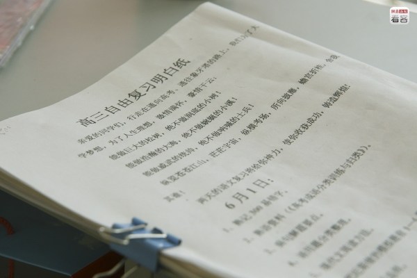 “我來學(xué)校做什么?我要做一個什么樣的人?我今天做得怎么樣?”貼在教學(xué)樓大廳的這個標(biāo)語被稱為“每日三思”。在高考前20天,班級里激勵標(biāo)語則是“20天大于3年,20天約等于一輩子”。