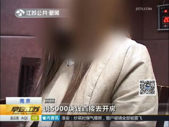 女子自稱叫麗麗,山東人,最近來南京旅游。無聊時在陌陌上認(rèn)識了一名男子,男子稱5000元直接去開房,麗麗答應(yīng)了。