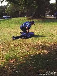 一名目擊導游說:“剛才有兩個客人在悉尼草坪上方便,讓警察看見了。警察追他們,他們提著褲子跑。他們惱羞成怒,要打警察。警察一個過肩摔,把一個男的摔地上骨折了。現(xiàn)在救護車,警車都過來了?!?/p>