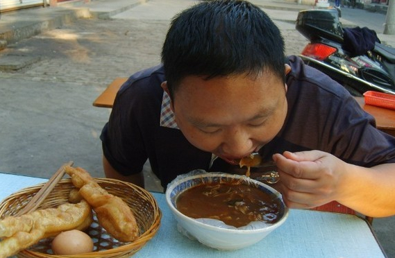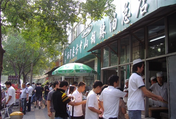 在河南各地,來喝胡辣湯的客人多是周圍街坊鄰居,于是胡辣湯店又變成了鄉(xiāng)親們的集會場所,用河南話這叫“趕飯場兒”。老李家的二閨女嫁到了城里,王家的老么考上了大學,東頭的老楊頭前幾天沒啦……這些信息隨著“刺—溜”聲得以交流。