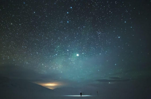 他獨(dú)自一人跑到星空下自拍,將自己與星空完美融合,詩意地展現(xiàn)人類的渺小、脆弱和孤獨(dú)。是啊,茫茫宇宙,我們至今沒有發(fā)現(xiàn)其他生命的存在,我們只是其中的一粒塵埃。